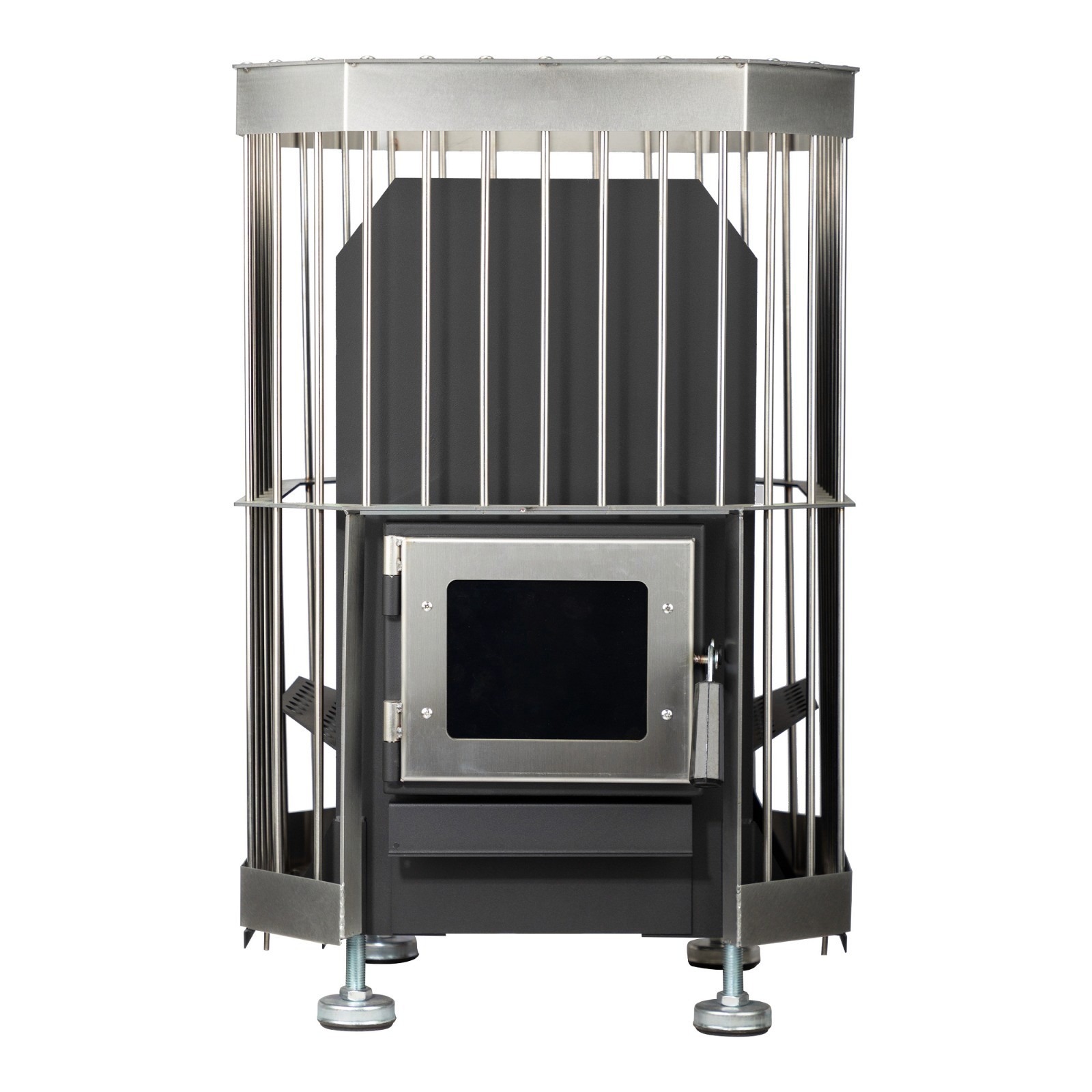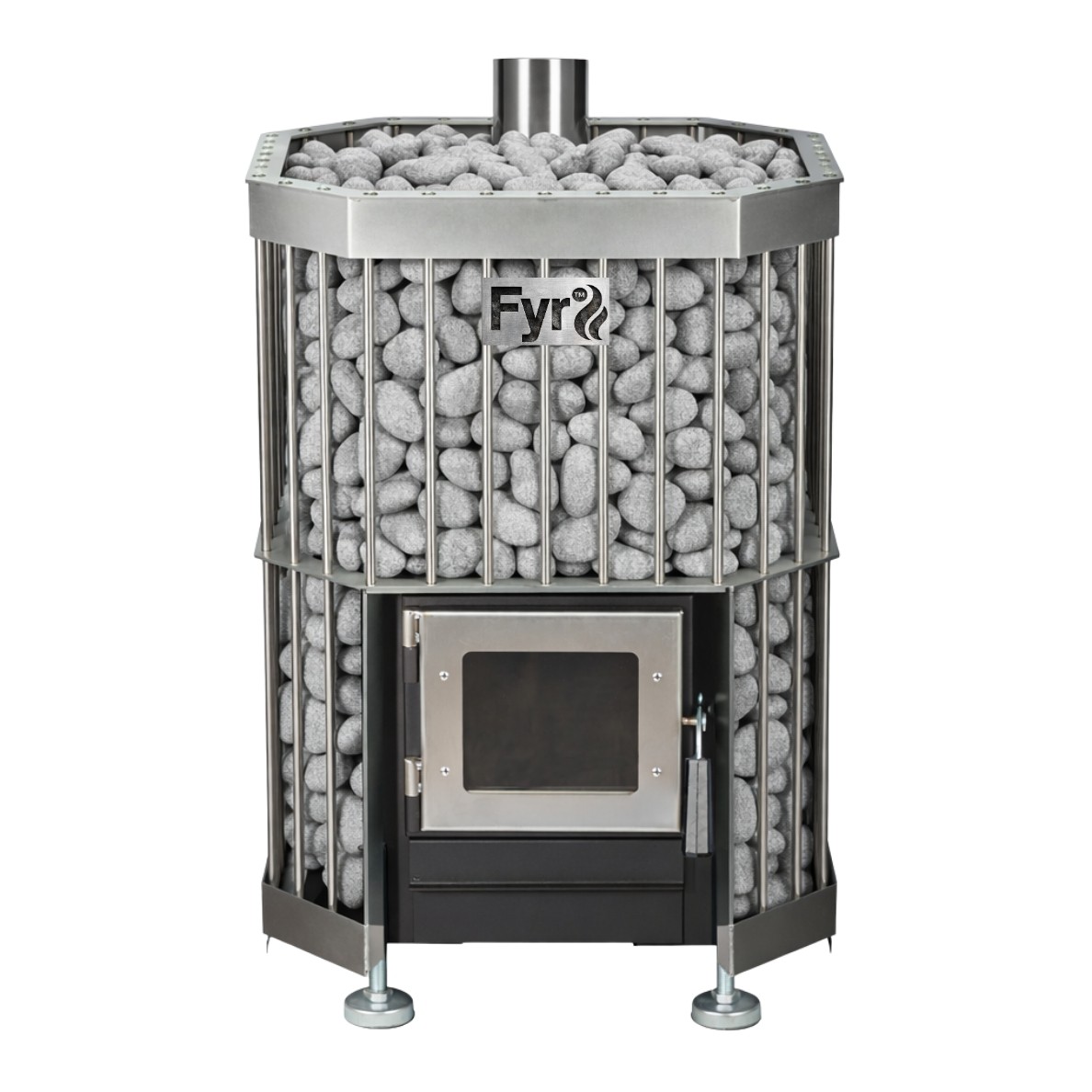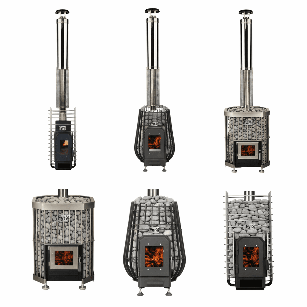 Wood fire sauna stove. Output: 10–25KW. Three sizes from 2-12 person saunas. Stainless steel build.